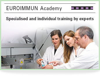 EUROIMMUN produces reagents for medical laboratory diagnostics. In the foreground are test systems for the determination of various antibodies in patient serum in the diagnosis of autoimmune diseases, infectious diseases and allergies. The test methods employed are predominantly indirect immunofluorescence, microplate ELISA, various blot techniques (Westernblot, EUROASSAY, EUROLINE, EUROLINE-WB) and all molecular biology techniques. The company is based on worldwide-patented state-of-the-art production methods and microanalysis techniques and is one of the world's leading manufacturers of medical laboratory diagnostics.